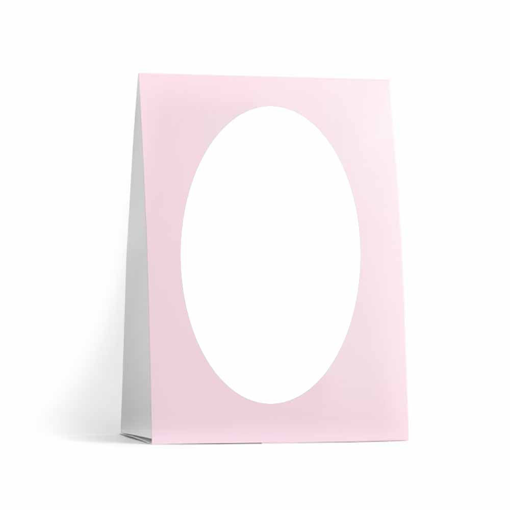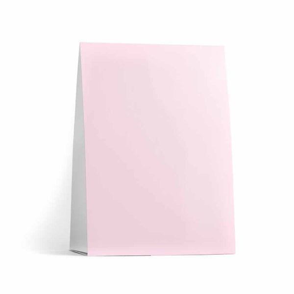 These baby pink table tents can be used for your table numbers. Each tent is double-sided with matte color. Blank for you to handwrite, stamp or label. 5" wide x 7" high. Set of 10 with optional printer labels.