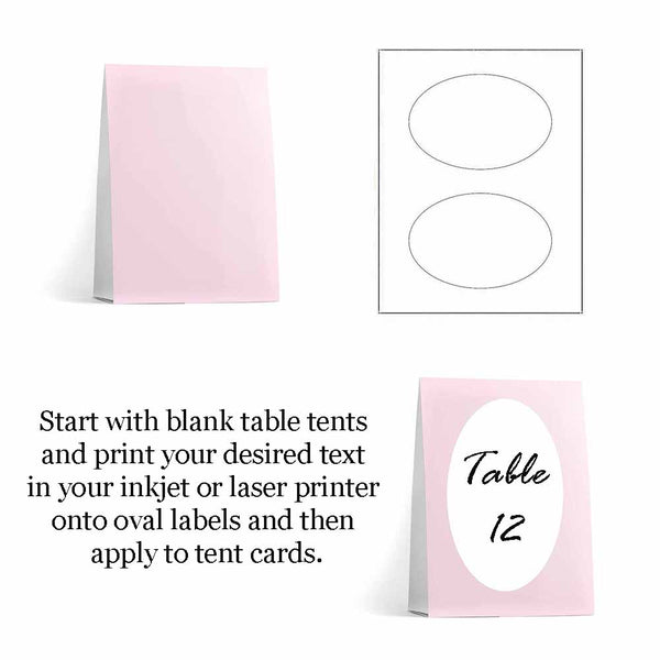 INCLUDE PRINTER LABELS - If you prefer to use a printer for your text simply add our oval printer labels that are designed to fit onto our tent cards when. Insert the label sheet into your printer, download the template, customize with your text, print and apply to the place cards. Includes 20 printer labels so you can use 10 of the labels on the cards as single-sided or use all 20 labels for double-sided cards.