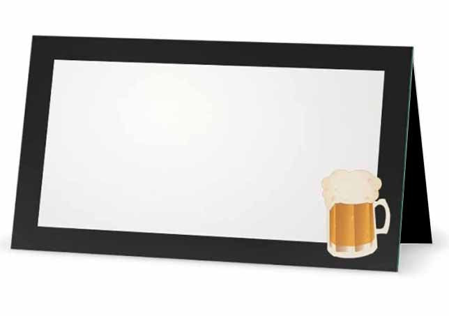 Place cards decorated with a black border on frontside come standard with black on backside. Cards fold to stand alone on table or can be placed into place card holders. Cards ship flat and are pre-scored to fold easily. Folded size is approximately 3 1/2" wide x 2" high. Cards ship unfolded. 110 lb. weight card stock. White space on one side so you can handwrite a name, table number, or any message. Available in sets of 10 and 50 count.