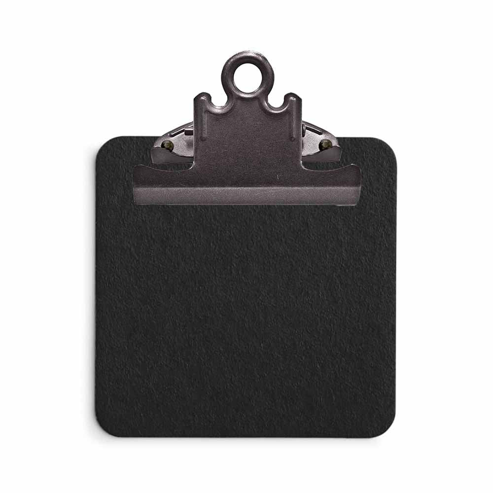 This mini clip board in black with a white sticky note pad can be refilled with any 3" x 3" sticky note, post it notes or memo pad. Clipboard is 4" wide x 4" high and 5" high at top of clip. White sticky note pad has 50 sheets of paper. Our designer sticky notes and personalized sticky notes are available to purchase separately to complement your clipboard.