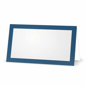 Our tent style place cards with steel blue color on topside come standard with white underside. Cards fold to stand alone on table or can be placed into place card holders. Cards ship flat and are pre-scored to fold easily. Folded size is approximately 3 1/2" wide x 2" high. Plenty of space so you can handwrite a name, table number, or any message. Add our clear, white or color inkjet or laser labels if you prefer to use a printer for your text. Labels fit inside the blank white space to blend in discreetly. Available in sets of 10 or 50 without or with printer labels.