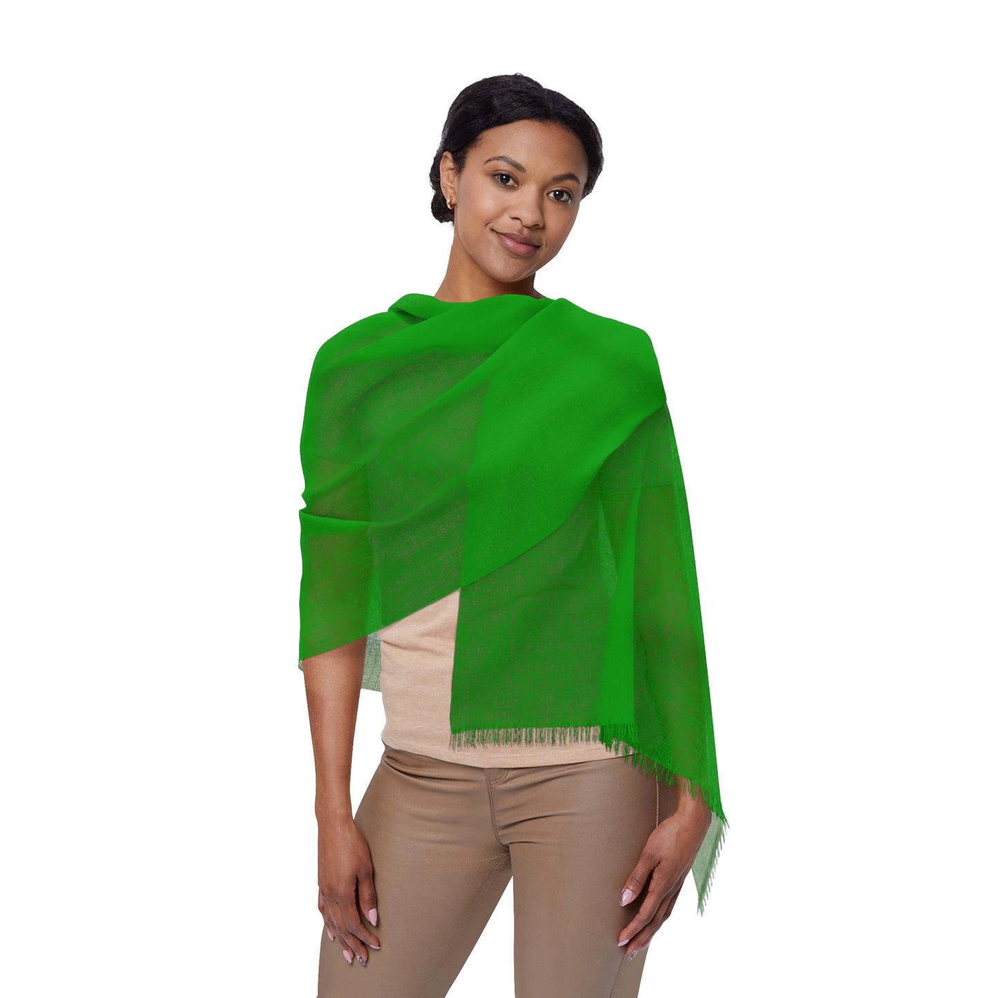 This lightweight long transparent scarf in green is the perfect accessory that ties together any outfit. Scarf is 27" x 73" and seamless.