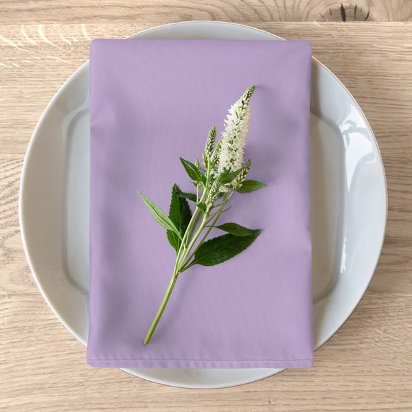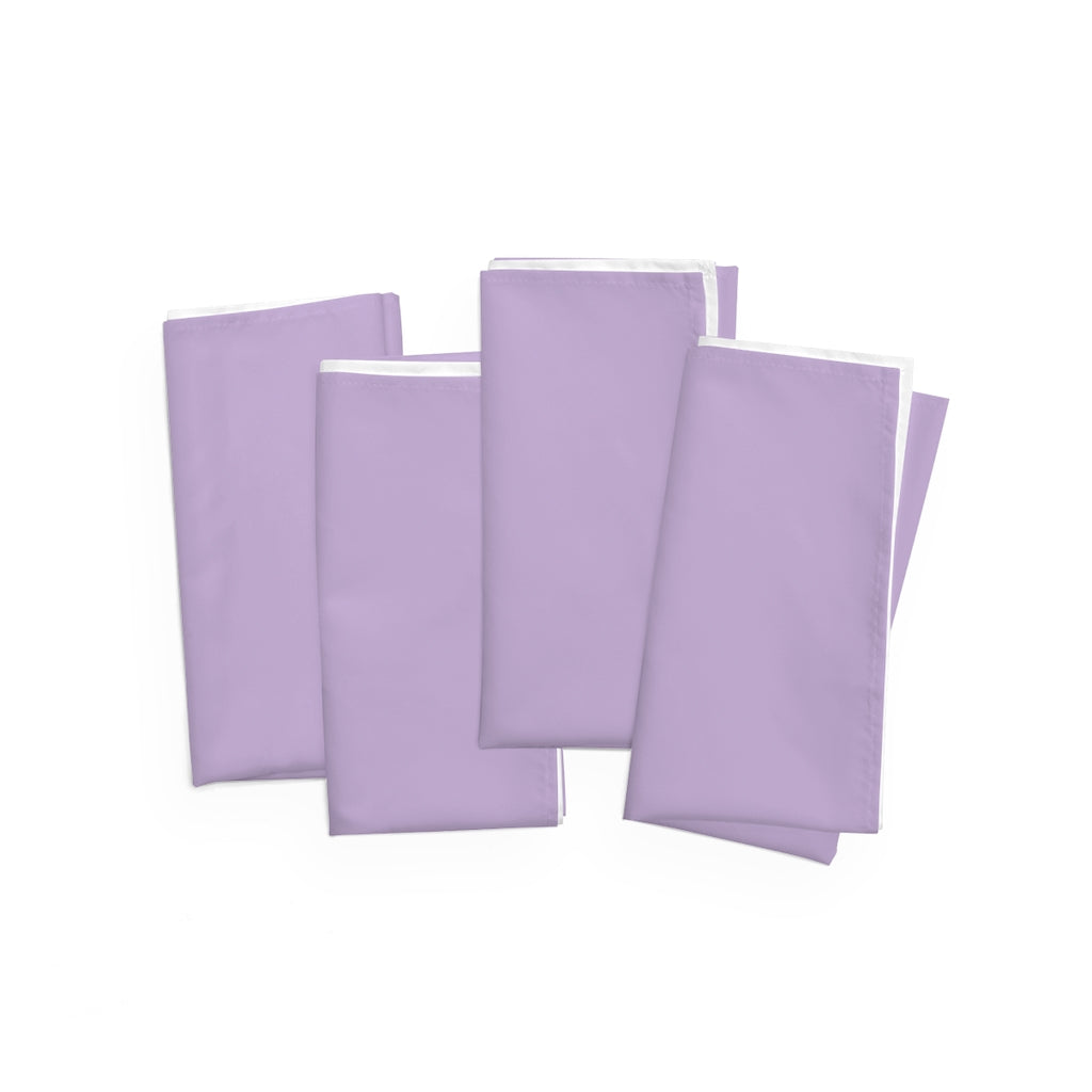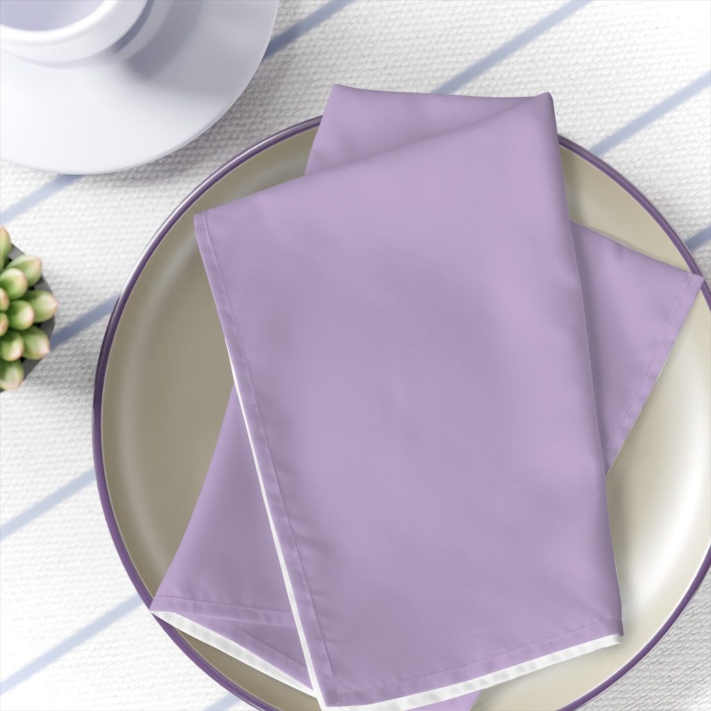 Whether it's for your business, your home party, or for any event, our fabric napkins bring much needed style to the table. Made with luxuriously soft microfiber fabric, lavender purple color print on the top with non-printed white bottom, our 4-piece sets are the ideal choice for cocktail napkins, wedding napkins, and more. 100% polyester material soft to the touch. Each napkin is 19" x 19" square. Four napkins per set. Machine wash: cold (max 30C or 90F), gentle cycle; Do not bleach; Tumble dry: low heat; Do not iron; Do not dryclean.