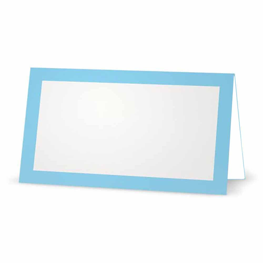 Light blue place cards ideal for weddings, bridal events, baby showers, birthdays, celebration events, banquet and catering food dishes. Underside of cards are white so can use as mini note cards, gift tags, food labels. Cards are 3.5" x 2" when folded. Cards ship unfolded. 110 lb. weight card stock.