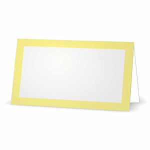 Lemon place cards ideal for weddings, bridal events, baby showers, birthdays, celebration events, banquet and catering food dishes. Underside of cards are white so can use as mini note cards, gift tags, food labels. Cards are 3.5" x 2" when folded. Cards ship unfolded. 110 lb. weight card stock.