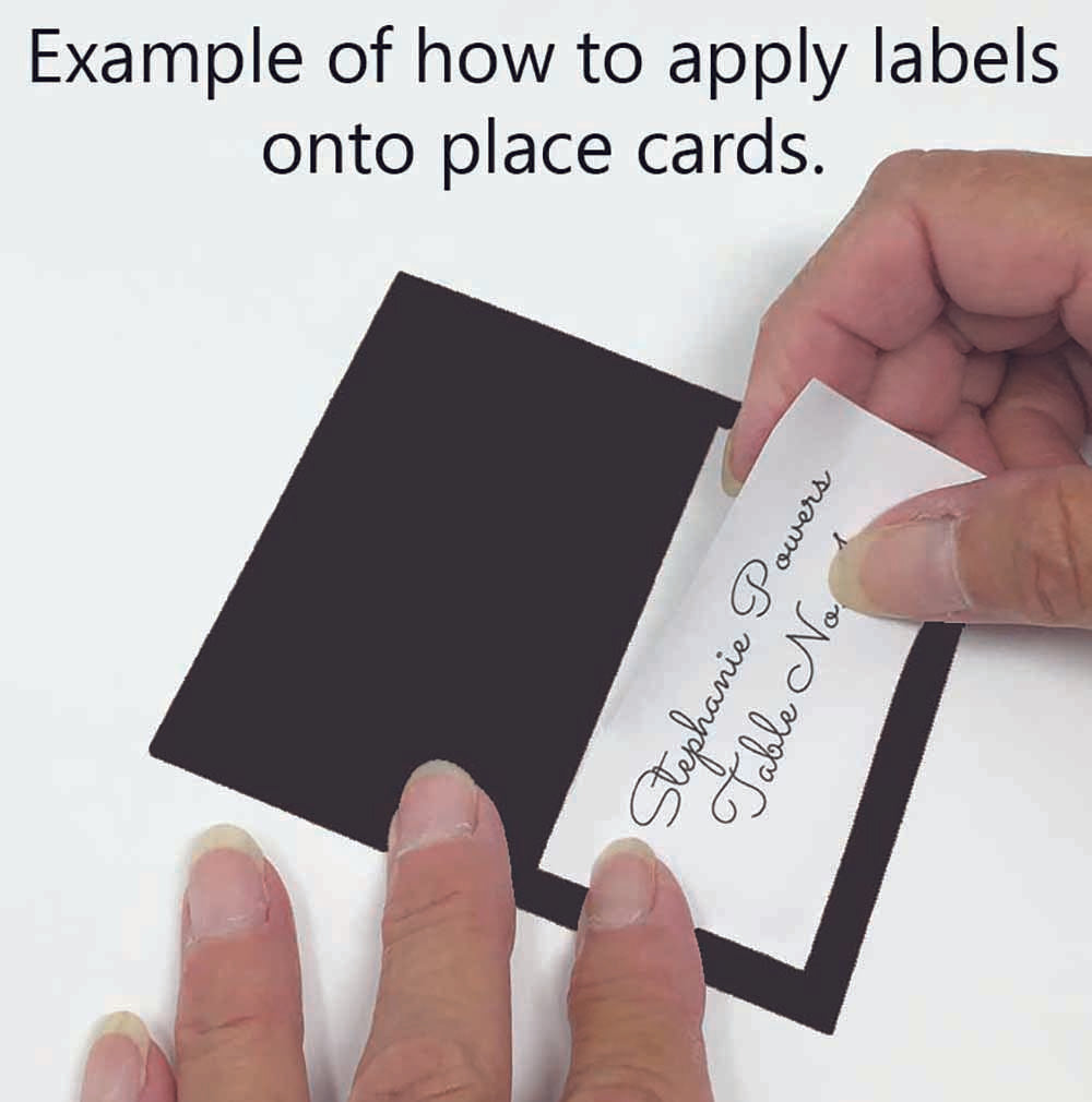 INCLUDE PRINTER LABELS - If you prefer to use a printer for your text simply add our printer labels that are designed to fit discreetly onto cards when adhered to the white space. Insert the label sheet into your printer, download the template, customize with your text, print and apply to the place cards.