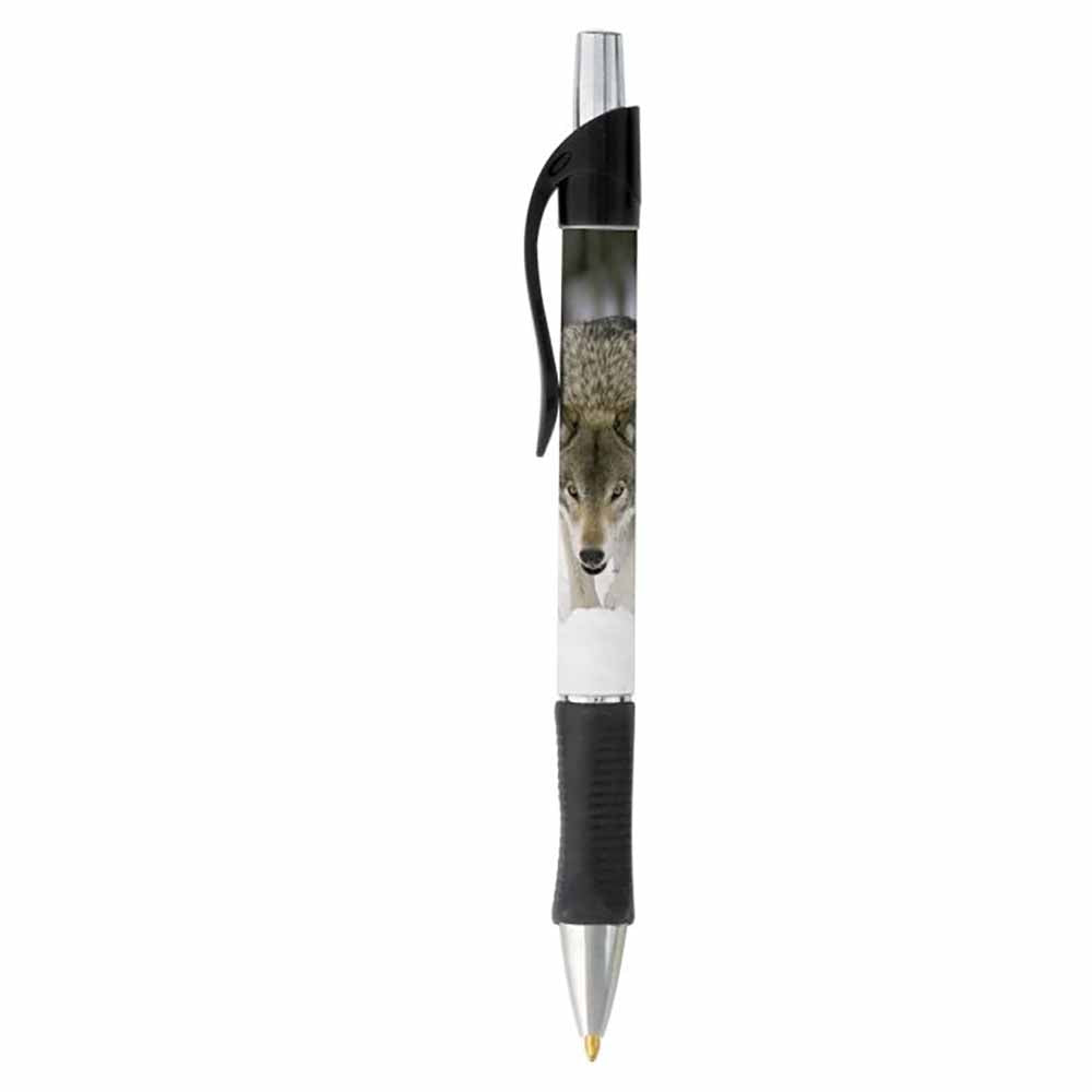This retractable pen with a wolf animal face design writes in medium point and is available in black or blue ink.